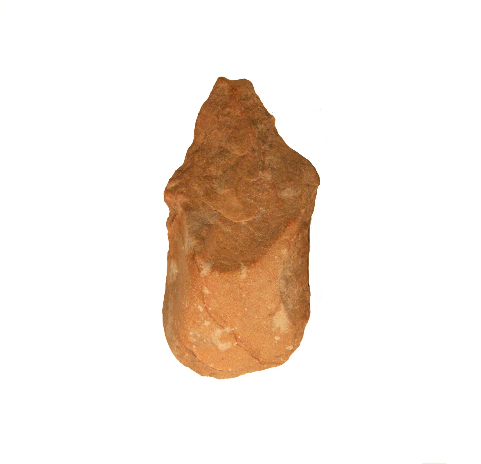 Instrumento talhado sobre seixo de quartzito, que terá sido usado há cerca de 200.000 anos, durante o Paleolítico Inferior, como ferramenta polivalente, para p. ex. exemplo partir e esmagar alimentos, por populações nómadas de caçadores e recolectores.