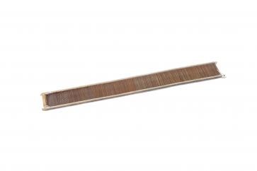 Pente de tear, de formato paralelepipédico, feito de cana. O pente é constituído por tiras laminadas de cana (designadas puas), interligadas e fixas, em cada uma das extremidades, a duas talas de cana (as costas) por fios de linho ou linho e algodão, distribuídas a espaços médios próprio para tecer estopa e tomentos. As puas são reforçadas lateralmente por um forçal, que consiste num segmento de madeira de secção oval, disposto paralelamente às puas. A servir de auxílio à tecedeira para a contagem dos liçóis (cadilhos ou caminhos) durante a operação de urdir a teia, existem uns pontos em algodão que atravessam as puas, na extremidade destas, e próximo das costas. Num dos forçais laterais está gravada a seguinte inscrição XXXXX (em numeração romana), que indica o número de caminhos do pente.