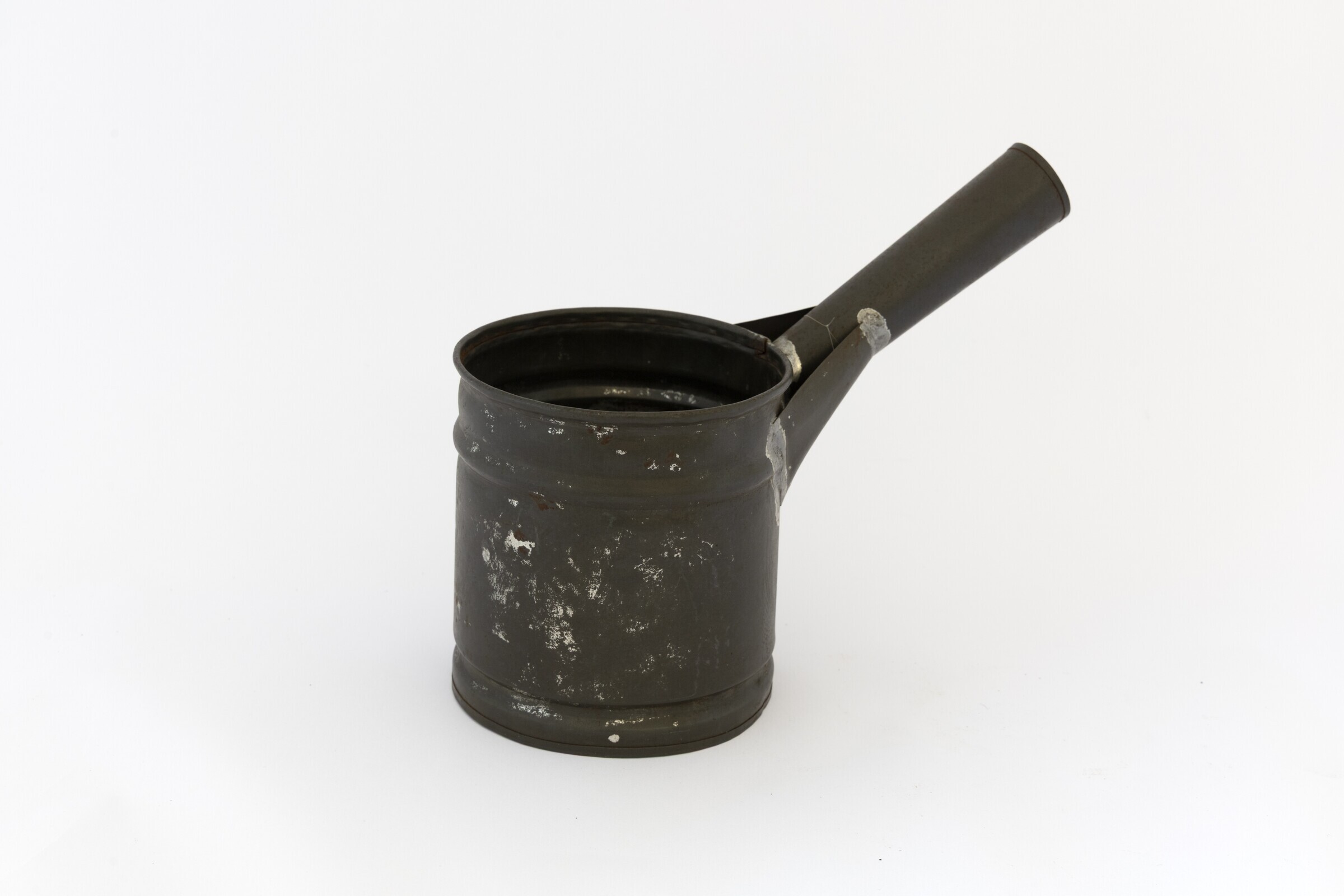 Este objeto, utilizado em contexto doméstico, sobretudo na cozinha, apresentando muitas vezes um cabo em madeira para o alongar, protegendo ainda a mão do utilizador, da temperatura elevada quando usado com produtos quentes, nomeadamente água. Este usado permitia transferir líquidos de um recipiente para outro.
