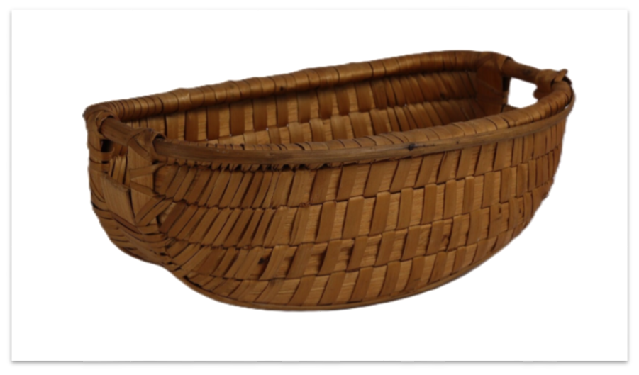 Miniatura de canastra de padeira. Apresenta bordos altos e duas aberturas, uma em cada extremidade, que servem como asas. O fundo é abaulado, prolongando-se até às duas aberturas das extremidades. As canastras eram obra de cesteiros ou canastreiros, sendo um dos trabalhos mais complexos que realizavam, pois implica o domínio de uma técnica de execução diferente dos restantes modelos da cestaria de madeira rachada.