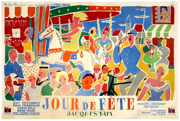 Uma sessão dedicada à grande comédia, composta por dois filmes, uma curta e uma longa metragem. Em “Escola de Carteiros”, o primeiro filme de Jacques Tati, encontramos três carteiros pressionados pelas ordens desnecessárias do seu superior numa estação de correios no campo. Montados nas suas bicicletas paradas, recordam cada um dos gestos do ritual de entrega de correio. Em “Há Festa na Aldeia”, a longa-metragem de estreia do genial realizador, somos transportados para uma pequena aldeia do centro de França. É dia de festa (Bastilha), os feirantes chegam à praça com as suas roulotes, carroças, carros, cestas, carrosséis, lotarias, fanfarras. Instala-se um cinema ambulante. É ocasião para os aldeões descobrirem um documentário sobre as proezas dos correios na América. Ridicularizado por toda a aldeia, François, o carteiro, decide aprender a executar o seu trabalho “à americana”.